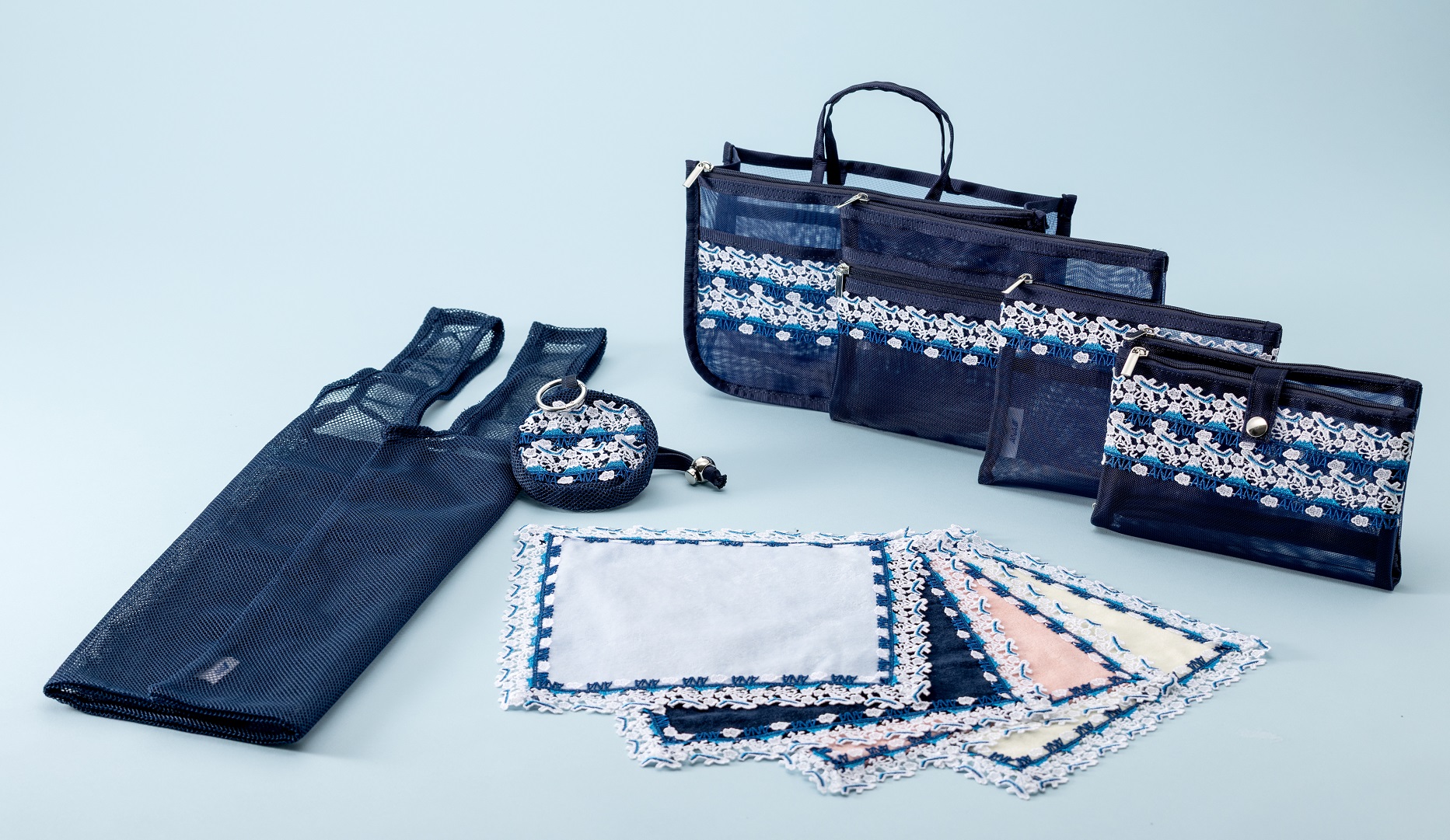 全日空商事株式会社は、横浜元町の老舗レース店「近沢レース店」とコラボレーションしたタオルハンカチやポーチなどの小物を発売します。10月31日(金)よりANA公式ECサイト「ANAショッピング A-style」、「ANAショッピング A-style ANA Mall店)」、国内線機内/ラウンジ内のANA Wi-Fi serviceからアクセスできるショッピングサイト「ANA STORE@SKY」にて販売開始します。