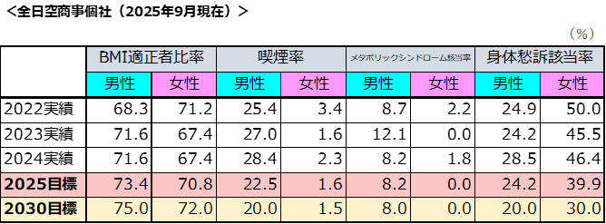 なお、社員の日々の健康管理を行うため、健保組合等保険者やANA東京グループ健康管理室との連携を行うことで健康経営に取り組んでいます。